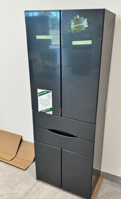Déstockage d'une colonne de rangement h160xl60xp34cm 4 portes en ouverture tip on, 2 tiroirs en finition anthracite brilant.