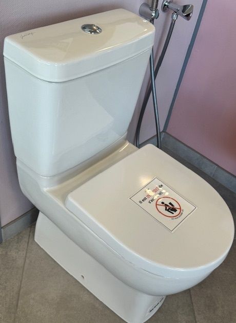 Déstockage d'un ensemble pack wc au sol Jacob Delafon en céramique blanc, abattant à frein de chute, évacuation variable avec l'arrivé d'eau par le bas